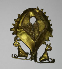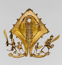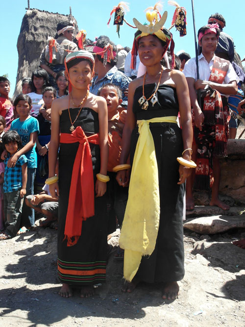 Take an exquisite gold mamuli ornament, for example. Mamulis are worn as earrings or pendants. No girl of good family can get married without a mamuli in Sumba, and though they were once exquisitely wrought, the finer work necessarily suffers as they are stored in the soot-encrusted treasure chest that hangs above the hearth of all Sumba clan houses, and when they come out for funerals or important festivals such as the one pictured here that celebrates the end of the holy month of Wullu Podu.
