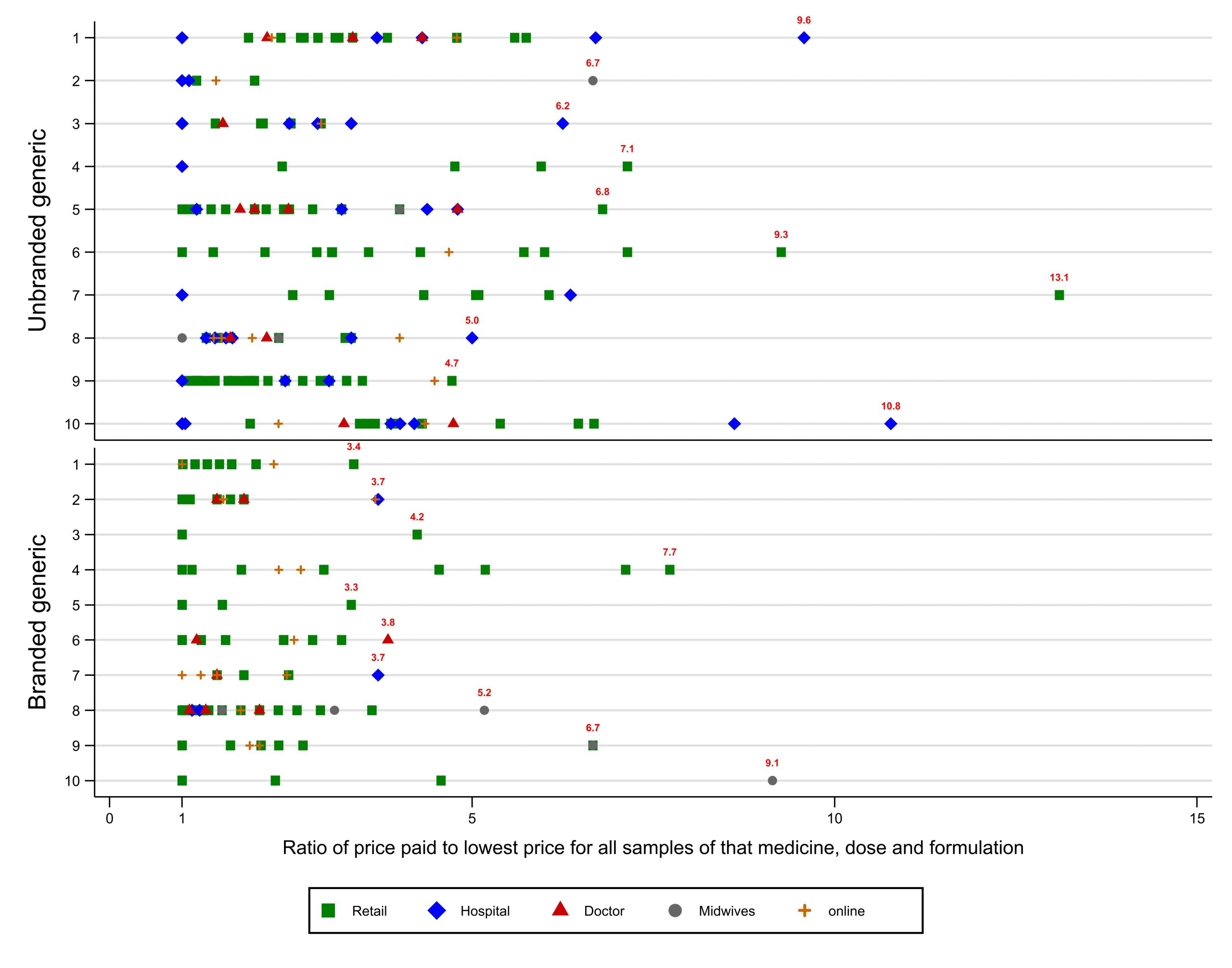 For some medicines, the most expensive brand we found was priced at over 100 times the cheapest. Prices often varied three or four-fold for the very same brand, depending on the outlet. However, affordable options were available even in remote rural areas.