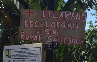 What is it with Indonesians and the law? It seems to me the country is beset with enthusiasm for purely symbolic laws, coupled with an utter disdain for the actual law. The photo above, taken in the Maduran town of Sumenep by my friend and colleague Michael Buehler, provides a delightful, home-made example of the first. Here’s a closer look: