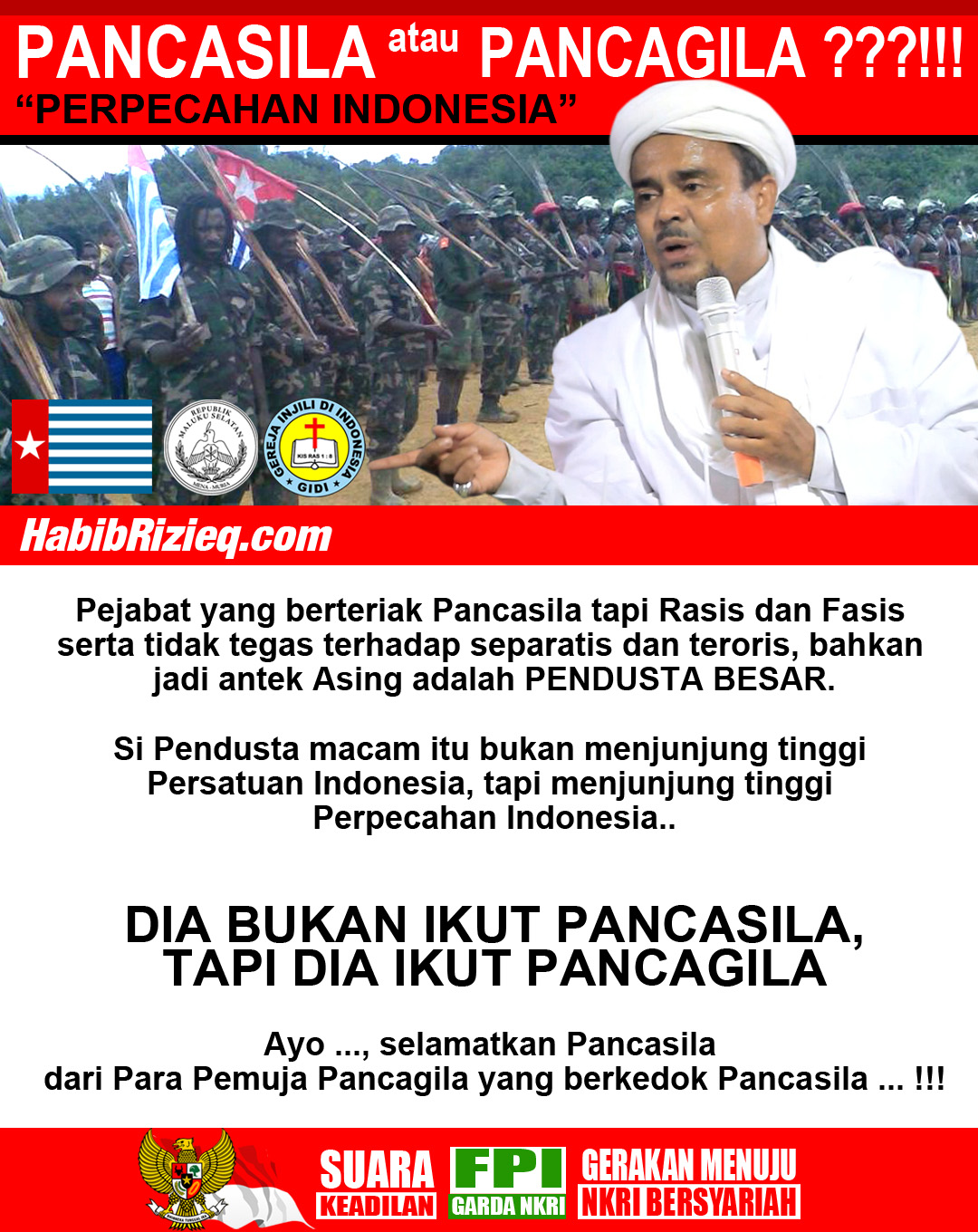 I fully agree with your assesment on FPI. In many occasions, FPI showed their insult on Pancasila. However the image you used for this, in my opinion, doesn’t depict insult – instead it implies tthat FPI is pro-Pancasila.