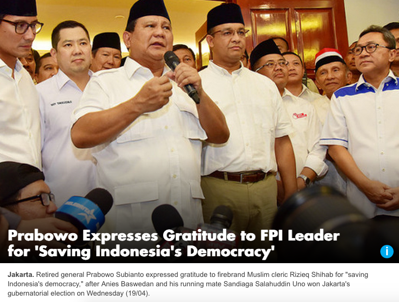 If your idea of democracy is a military led junta with power sharing only amongst the elite, then Prabowo is correct.