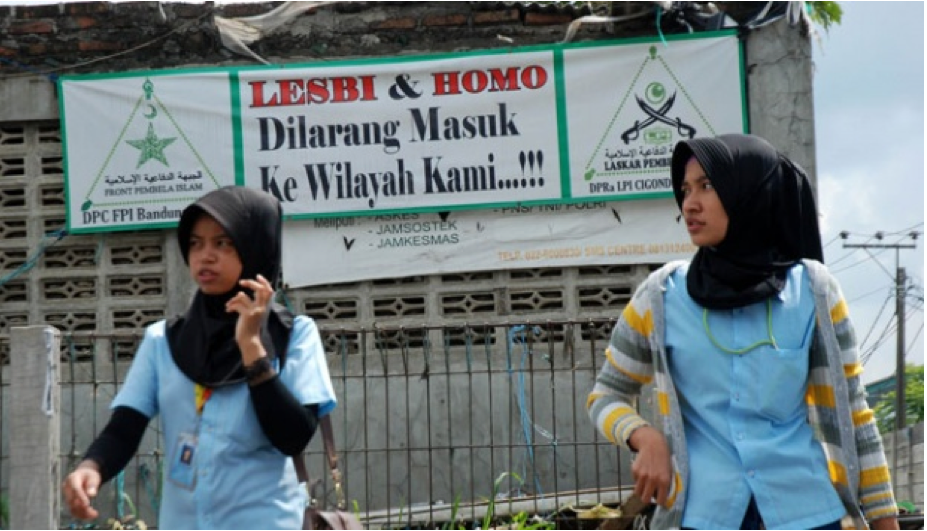 Banner in Jakarta reads: Lesbis and Gays: No entry to our neighbourhood!